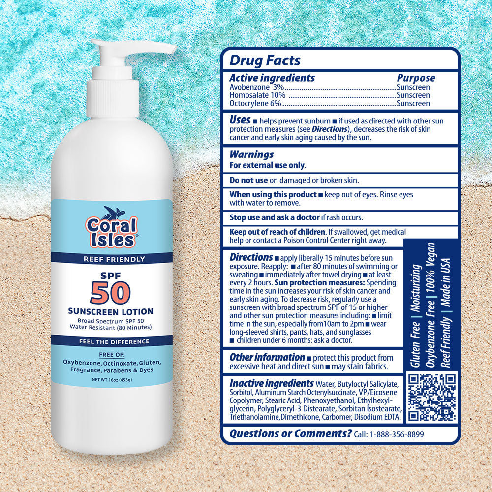 16-oz Coral Isles SPF 50 Sunscreen Lotion with Pump